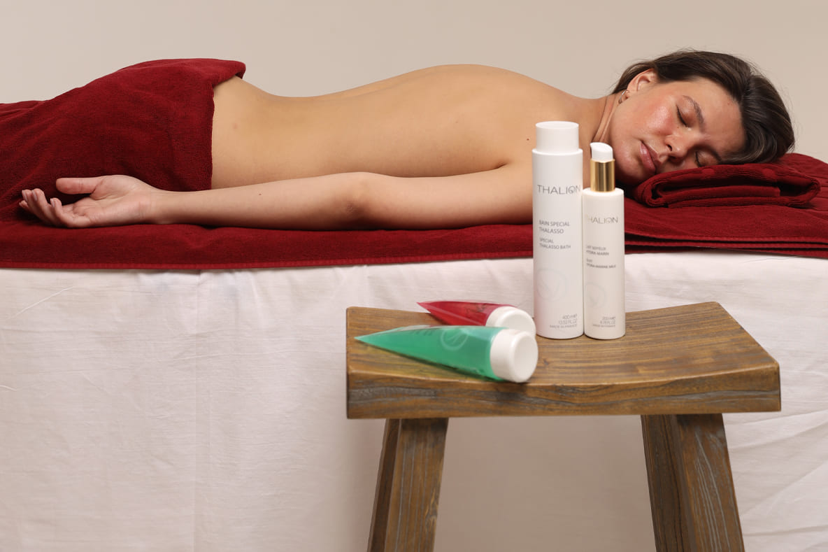 Насыщение организма морскими минералами, в особенности магнием, эффективно восстанавливает минеральный баланс организма. Уникальные движения массажной техники THALION SIGNATURE глубоко воздействуют на ткани и обеспечивают физиологичную мобилизацию суставов, снимая мышечные напряжения и наполняя тело жизненной энергией.